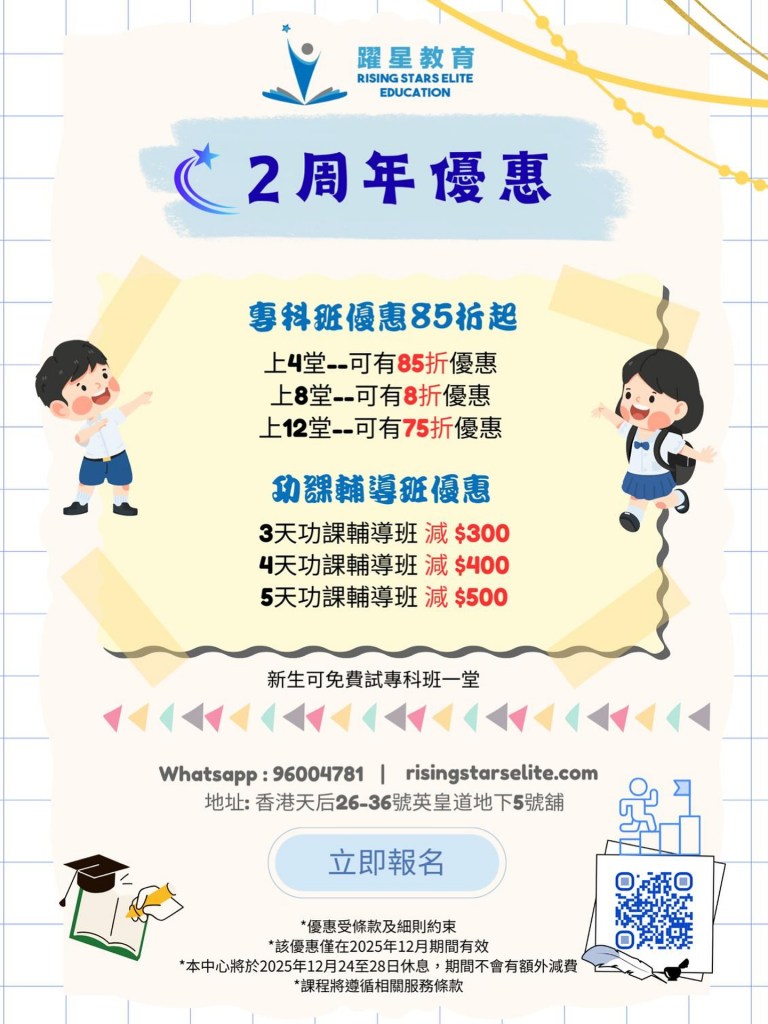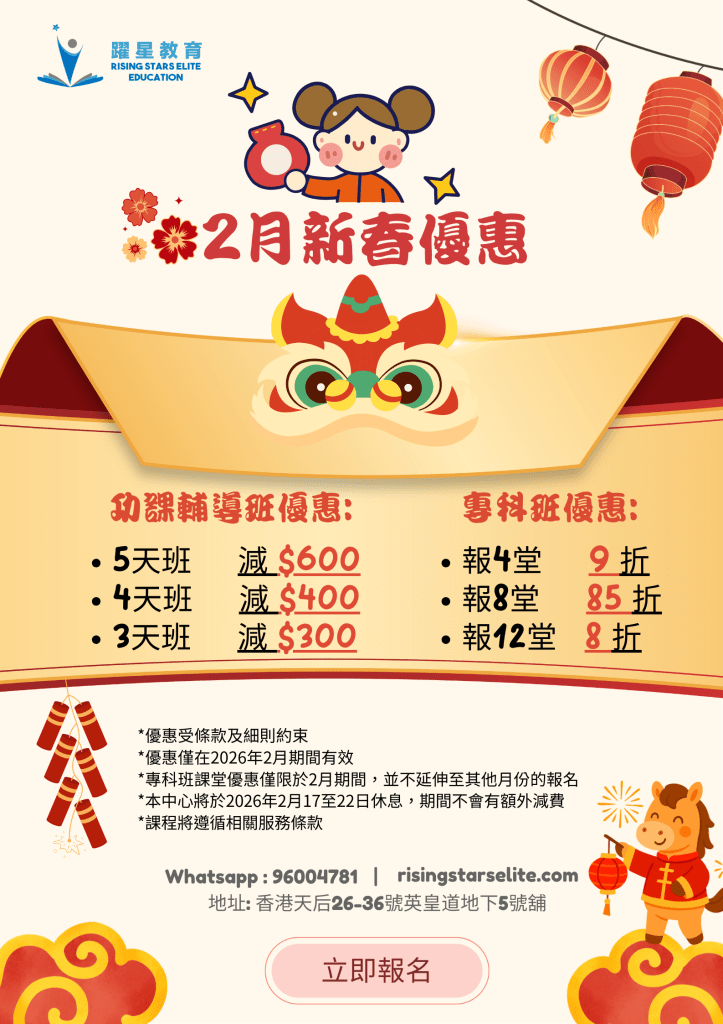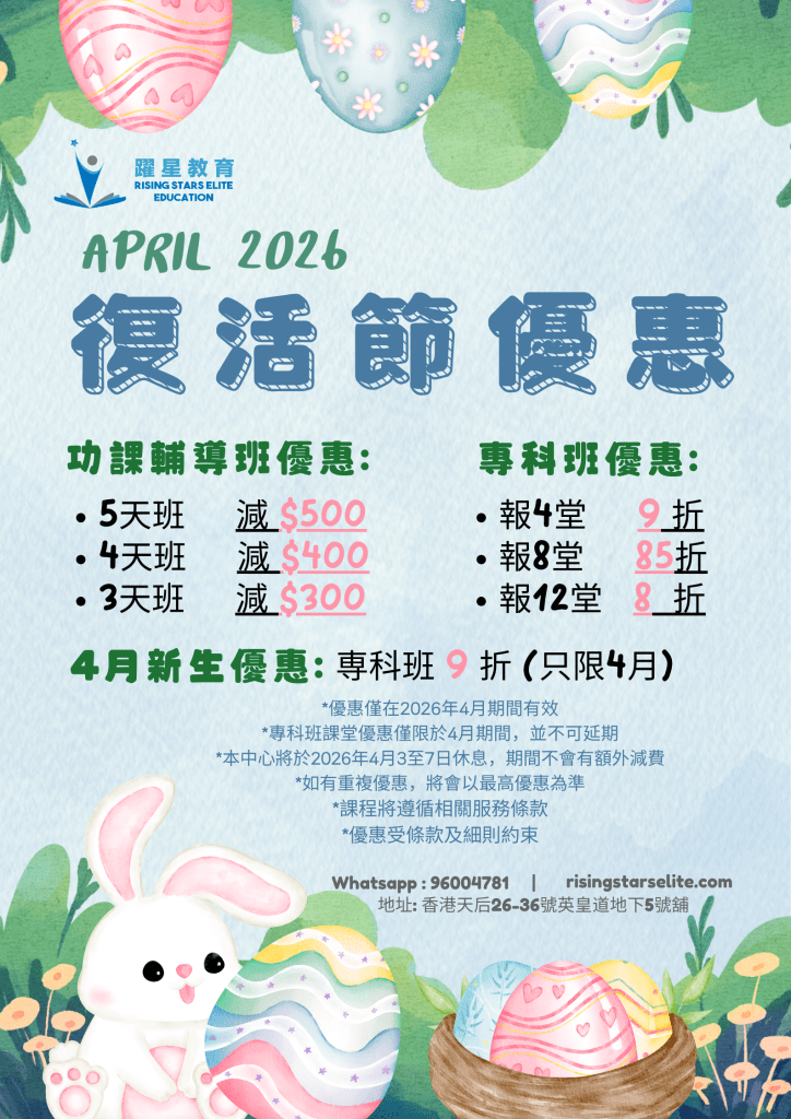 Tel 3579 2630|WhatsApp 96004781|香港天后英皇道26-36號地下5號舖|info@risingstarseducation.com