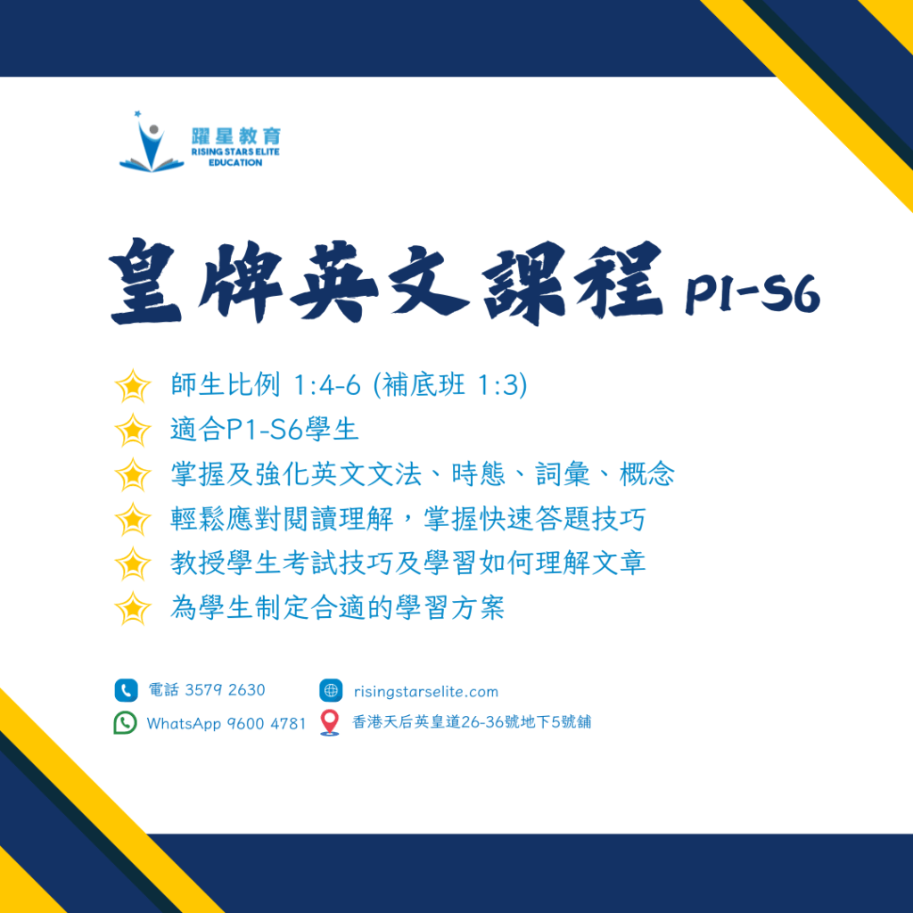 - S4 – S6 – 英文閱讀理解班 (Paper 1)
