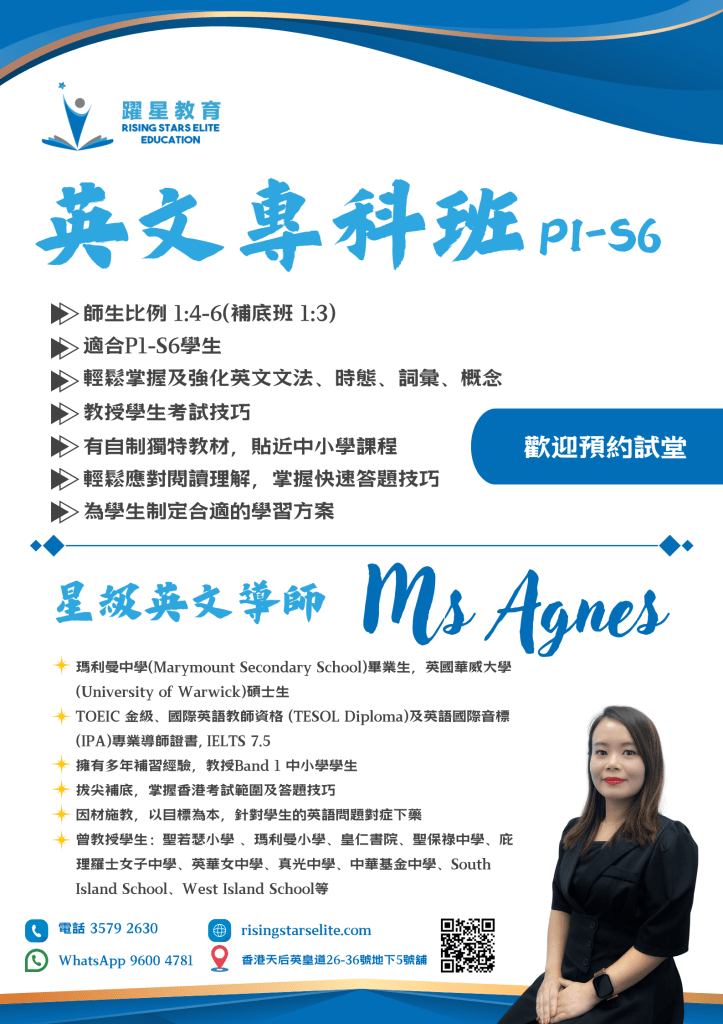 - S1 – S3 – 英文專科班 (閱讀理解及文法)
