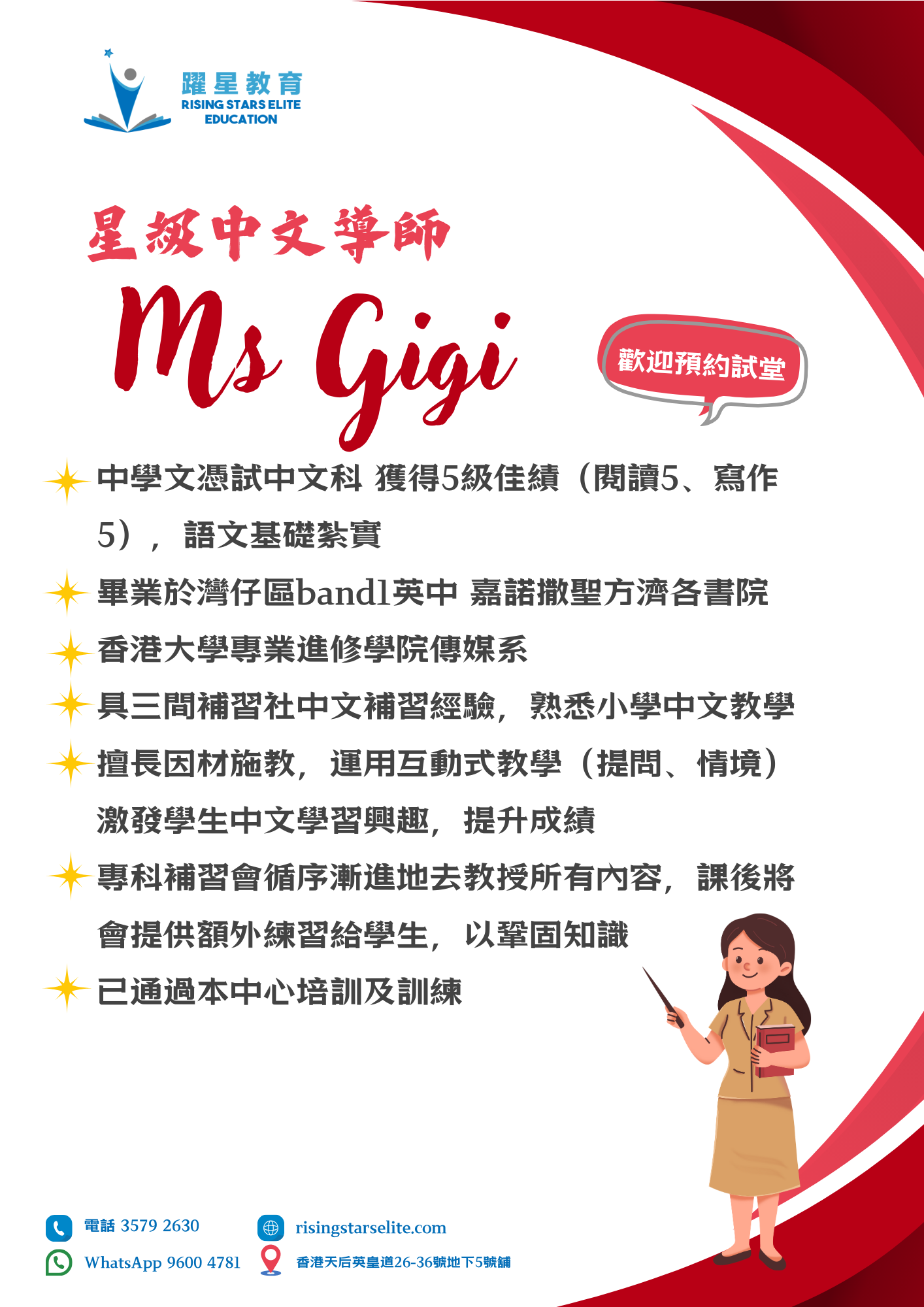 Tel 3579 2630|WhatsApp 96004781|香港天后英皇道26-36號地下5號舖|info@risingstarseducation.com