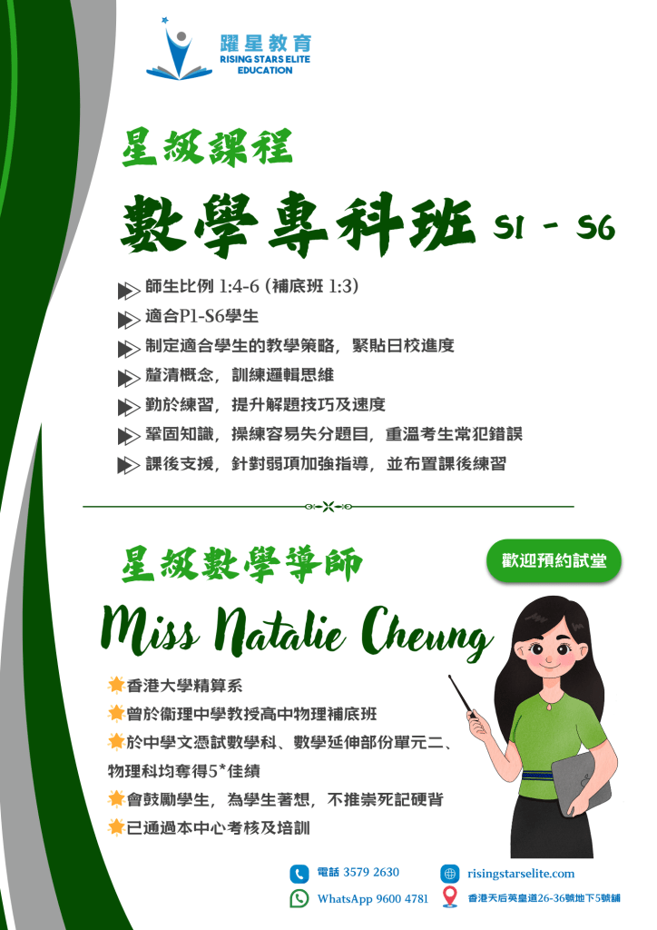 Tel 3579 2630|WhatsApp 96004781|香港天后英皇道26-36號地下5號舖|info@risingstarseducation.com