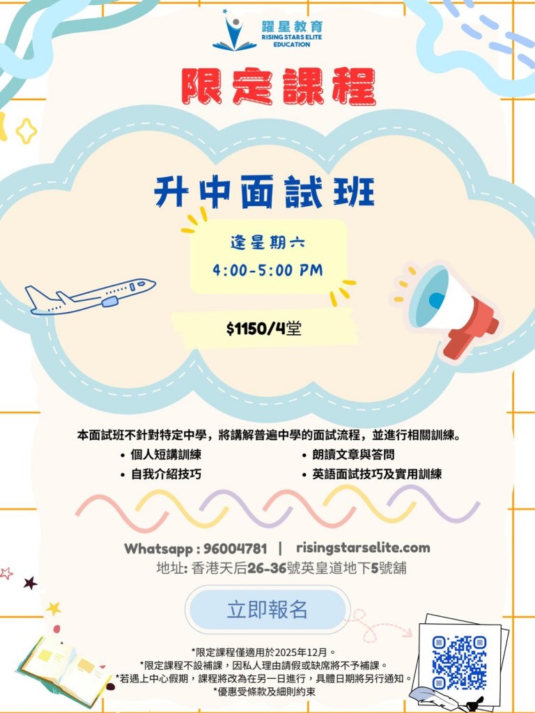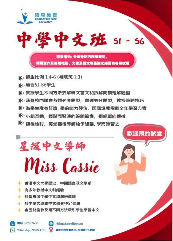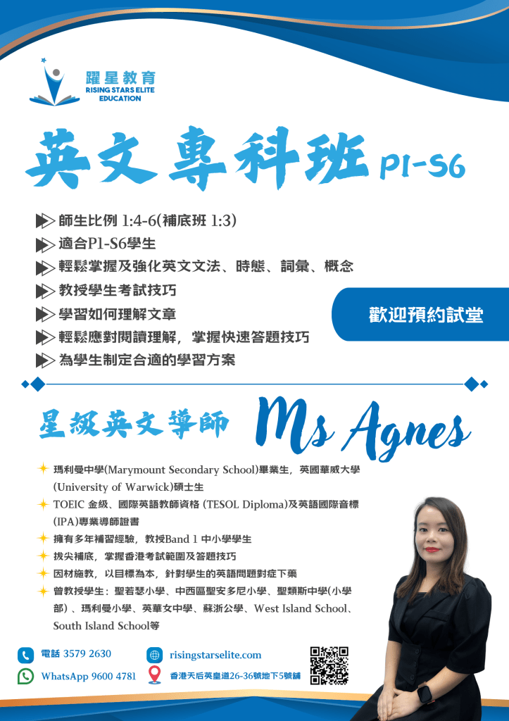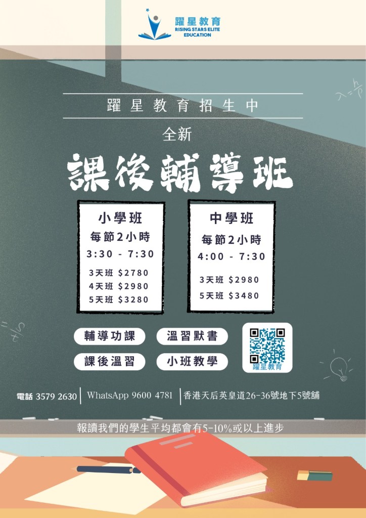 Tel 3579 2630|WhatsApp 96004781|香港天后英皇道26-36號地下5號舖|info@risingstarseducation.com